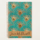 Un élégant motif de plumes de paon parties scintillant or sur arrière - plan aqua. Personnaliser avec nom ou autre message personnel