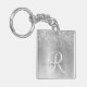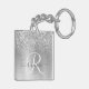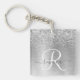 Personnalisez facilement ce design porte - clé chic et branché, avec une jolie parties scintillant brillante en argent sur un arrière - plan métallique brossé en argent.