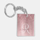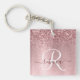 Personnalisez facilement ce design porte - clé chic branché avec une jolie parties scintillant brillante rose vif sur un arrière - plan métallique brossé rose vif.