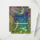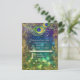 Correspondance de la carte de réponse RSVP avec des choix de menu simples. Cette conception est faite avec des plumes de paon aquarellées à la main ornées de bijoux en diamant dessinés graphiquement (NOTE : il s'agit d'une invitation imprimée à plat il n'y a pas de vrais bijoux, parties scintillant or ou feuille métallique ou encre utilisée) sur un bokeh coloré scintillant, lumières scintillantes arrière - plan en violet profond, bleu, aqua et vert. Modifiez facilement votre texte à l'aide des champs modèles fournis. Art par Audrey Jeanne Roberts, artiste titulaire d'une licence internationale, copyright.