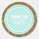 Stickers Parties scintillant Merci Gold Personnalisables Avec Aqua et Cercle Blanc Conçus. Beaucoup d'autres couleurs disponibles. Peut être utilisé pour une variété d'événements allant des Mariages aux anniversaires et autres événements de votre choix. L'article a un design Center off-White pour un aspect différent.