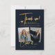 Parties scintillant d'or moderne Script sur Blue Chic Photo Graduation Carte de remerciements. Donnez Wow 'Merci' à votre famille et amis avec cette belle carte de remerciements. Tous les textes sont pré-arrangés pour que vous personnalisiez facilement et rapidement avec vos propres mots.