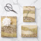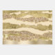 Un trio de feuilles de papier d'emballage avec un éclatant; glam et design élégant comprenant des bandes de parties scintillant en faux or disposées horizontalement l'un sur l'autre, ce qui donne l'illusion d'un marbre; dessus en granit ou en agate. Ce design est idéal pour tout mariage d'or spécial, anniversaire de mariage d'or, anniversaire, événement officiel ou fête.
