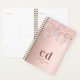 Un arrière - plan métallique à l'aspect faux rose à l'or rose élégant, rose et faux argent parties scintillant gouttes, look goutte à goutte de peinture. Personnalisez et ajoutez vos initiales monographiques, votre nom et une année 2021 (ou toute année)