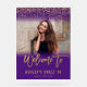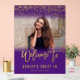 Glamour violet et or glitter doux 16 signe acrylique bienvenu. Utilisez les outils de modèle en ligne pour ajouter votre propre photo. L'ÉCHANTILLON DE PHOTO N'EST PAS INCLUS. REMPLACEZ PAR VOTRE PROPRE PHOTO AVANT DE COMMANDER. Les dessins sont des illustrations/graphiques à papier plat - PAS VRAIMENT GOLD GLITTER.