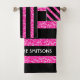 Parties scintillant brillante rose chaud moderne et rayures noires, verticale horizontale et diagonale. monogramme personnalisé