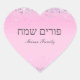 Parties scintillant rose Coeur heureux Étiquette Purim