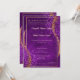Des motifs de mandala violettes pâles occupent les coins opposés d'une carte peinte en violet, décorée d'un double cadre d'or jaune droit et d'un tourbillon de parties scintillant d'or rose. Le texte de votre faire-part de mariage est une formulation traditionnelle présentée dans un or rose pâle.