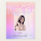 Un arrière - plan de couleur arc-en-ciel en or violet, rose et rose avec de l'or faux rose élégant, gouttes de parties scintillant rose et violet, look dérapant de peinture. Personnalisez et ajoutez votre propre photo, nom et une année. Le nom est écrit en gris avec un grand script de style moderne écrit à la main avec des swashes. Pour que les swashes ne suppriment que le nom de l'échantillon, laissez les espaces ou émoticônes devant et après le nom. Parfait pour l'école, le travail ou l'organisation de votre vie personnelle/familiale.