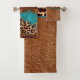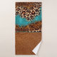 Vous aimerez ce magnifique design au style occidental coloré avec parties scintillant turquoise, cuir marron avec fioritures et poster de animal léopard. Bon appétit !