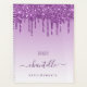 Un dégradé violet violet arrière - plan avec des gouttes de parties scintillant violette profonde, la peinture goutte à goutte. Personnalisez et ajoutez une année (n'importe quelle année) un nom et un titre. Le nom est écrit en violet avec un script de style moderne écrit à la main avec des swashes. Parfait pour les affaires, l'école, le journal, le travail ou l'organisation de votre vie personnelle/familiale. Pour que les swashes ne suppriment que le nom de l'échantillon, laissez les espaces ou émoticônes devant et après le nom.