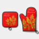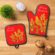 Partridge In A Pear Tree Red Merry Christmas Oven Mitt & Pot Holder Set