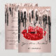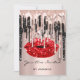 Party 16th Red Lips Kiss Rose Glitter Drips Black Invitation