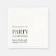 Add a touch of humour to your wedding celebration with these party accordingly funny wedding bar napkins, perfect for setting a lively and fun atmosphere. Ideal for wedding receptions, cocktail hours, rehearsal dinners, and engagement parties, these napkins bring personality to your bar area while keeping guests entertained. Whether you're hosting a chic modern wedding, a rustic outdoor celebration, or a glamourous ballroom event, these playful napkins complement a variety of themes. A great conversation starter, they make a memorable addition to drink stations and add a unique, lighthearted touch to your special day.