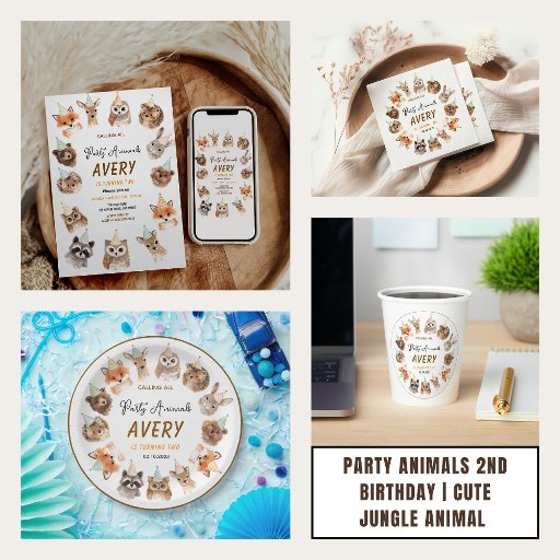 Party Animals 2nd Birthday | Cute Jungle Animal Invitation