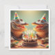 A funny illustration of crocodile having a party with cake and party hats, a perfect card for the crocodile lover and reptile lover.
