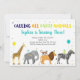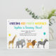 This birthday invitation features cute safari animals, colourful confetti and balloons, this design is perfect for a boy or girl.