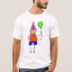 Cute whimsical illustration of a little cartoon boy going to a birthday party wearing his party hat and holding his balloon. Image available on various gifts and products.