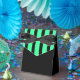 Party favour box shown in black/lime striped with a black accent ribbon. Customize this item or buy as is.