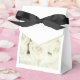 Party favour box shown in white with a black ribbon bow and with pretty white roses on the front. Customize this item or buy as is.