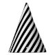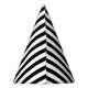 This is a fun birthday party hat to wear for a party. It features black and white stripes.