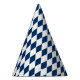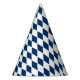 This is a fun hat to wear for a party. It features a blue and white diamond shape pattern.