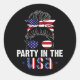 Party In USA Messy Bun 4th July Patriotic Classic Round Sticker