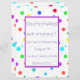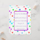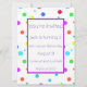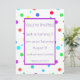 This invitation is printed on both sides and is fun, colourful and of course can be customized. These invitations have brightly-coloured spots and dots printed on both sides. The front has a white area for your personal message which is framed in purple. Choose your font and colour of font. These will be a fun addition for a child’s birthday party. There's no pink in these so they can be used for a boy or girl.