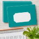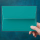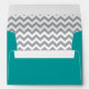 Teal envelope that has a stylish white area to make it easy for you to write in a name and an address and chevron grey and white design inside.