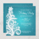 Elegant Holiday/Christmas Party invitation card with swirly Christmas Tree Turquoise . Impress your friends with this modern invitation design. Fully customizable!
