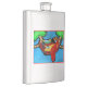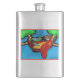 The product is a good size and came exactly as it was pictured. The lid is not attached to the flask, which could be dangerous on drunken nights... The print came out surprisingly well and looks very sharp. Would definitely recommend.