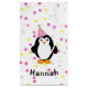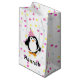Personalize this cute cartoon penguin wearing a colourful party hat with a circle confetti pattern in the background gift bag with a name or text of choice.