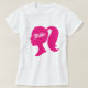 This fun pink bachelorette T-shirt is accented with a customizable, bright pink silhouette of a girl with a pony tail, making it perfect for a Barbiecore Party! If additional coordinating items are needed, just contact us with your request at prettyfancyinvites@gmail.com.