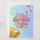 Front: The card has a light blue background. In the centre, there is a large red text that reads “Happy Birthday to You,” decorated with white and red stars. Above the text, there are two white fireworks, and scattered around are small stars. To the right, there are two gift boxes with red ribbons, and in the bottom left corner, there is a golden heart-shaped balloon.