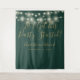 Featuring pretty string lights and chic gold typography script on an emerald green background, this chic photo booth backdrop can be personalized with your message, names and special date. Designed by Thisisnotme©