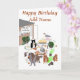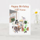 Add name to front of birthday card. Birds and animals enjoying the party food before the guests arrive. Red squirrels, seagulls, cat and dog and small birds, eating cakes and savories.