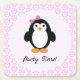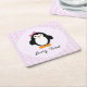 Party time! Cute cartoon girl penguin with pink floral background coasters.