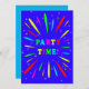 An explosive party time invitation! What a wonderful way to send out party invitations. The words 'Party Time' in bright colours with an explosion of bright colours and stars.
