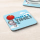 Hard plastic coasters for your party featuring a cute opossom in a striped party hat, floating by on a big red balloon while blowing a star spangled party blower. Use "Personalize this template" to change the "PARTY TIME!" text.