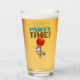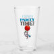 Use "Personalize this template" to change the "PARTY TIME!" text, text changes are reflected on both sides. A glass featuring a cute opossom in a striped party hat, floating by on a big red balloon while blowing a star spangled party blower.