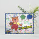A cute teddy bear wearing a party hat, and holding balloons and a cupcake will bring a festive touch to your party. You can easily change the text on the back of this invitation by clicking on the Customize it Button.