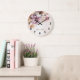 Party Watercolor Boho Pink Flowers Elegant Stylish Large Clock