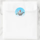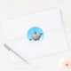 Classic Round Sticker for a birthday pool party with a cute illustration of a little whale. The whale is wearing a red and white striped party hat and has started the birthday party in the pool.