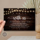 Mark the beginning of your forever with rustic elegance using our cottage and village string lights dark brown wood background themed, wedding elopement celebration invitation card, "Party with us". Perfect for couples extending their joyous occasion, this invitation exudes sophistication with a hint of playfulness, setting the stage for a memorable event. Adorned with a timeless modern script design theme, it adds a touch of refined charm to your festivities. Crafted by TeeshaDerrick, this invitation promises to beautifully capture your love story.