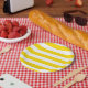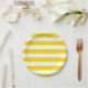 Modern Stylish Yellow White Stripes Template Round Paper Plates.