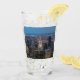 Un verre à pinte spécial avec une photo de l'horizon de New York la nuit et le logo Tourist dans votre ville sur le dos.