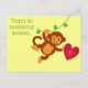 Ce petit singe se balance pour dire qu'il est des bananes à votre sujet sur cette mignonne carte postale de Saint Valentin. Customisez le message pour dire exactement ce que vous voulez.