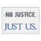 "No Justice" dans une police grindée gris. "Juste nous" dans une police bleu poudre plus propre.