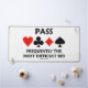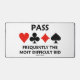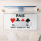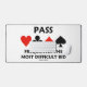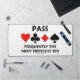 Showcase your wry sense of duplicate bridge humour with this desk mat featuring the four card suits along with the truism saying: "Pass Frequently The Most Difficult Bid". Make yourself and others do a double-take on your deep understanding of the conundrum involved in bidding your bridge hands with a dose of bridge attitude today!