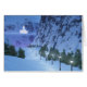 The sparkling snow-covered path is hemmed in by dark fir trees. On the far side of the cleft a translucent glowing fairy castle awaits the enchanted traveller on his journey to fairyland.